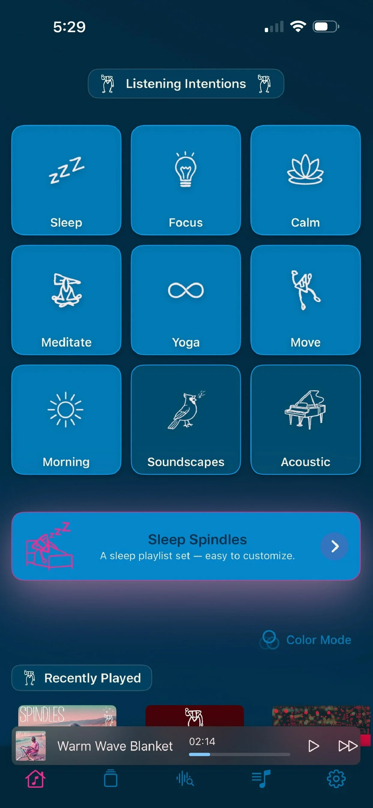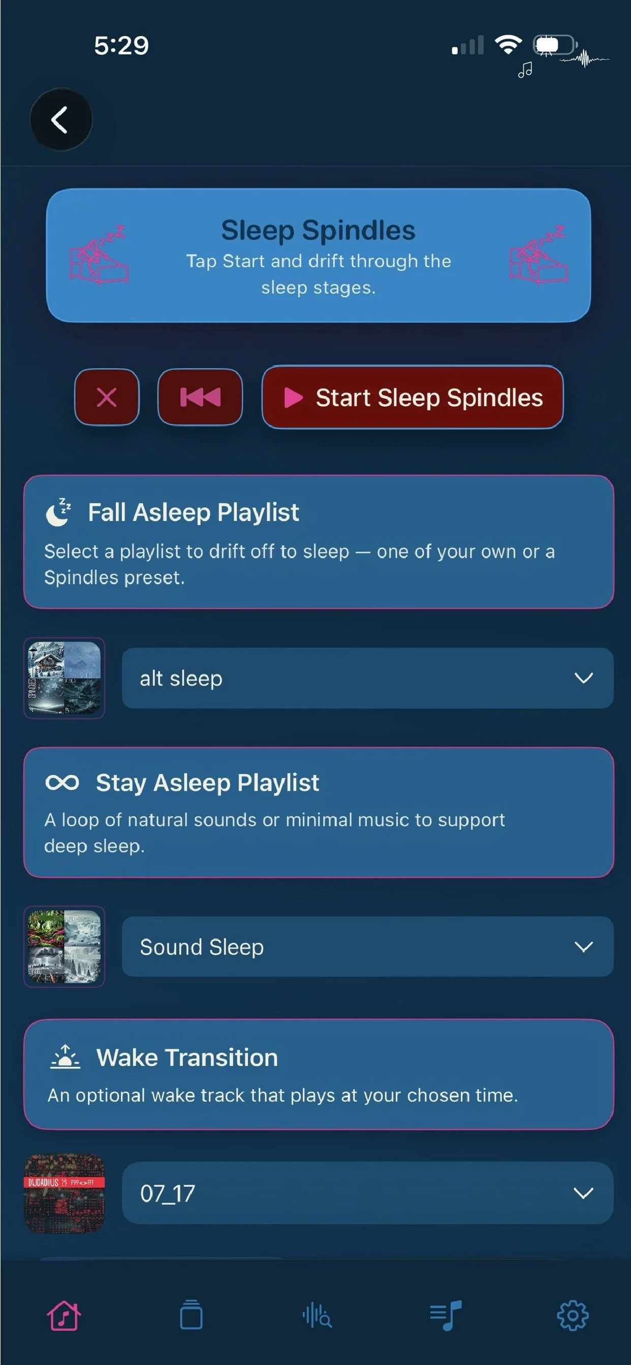 Sleep Spindles mode – structured playback for falling asleep, staying asleep, and waking gently